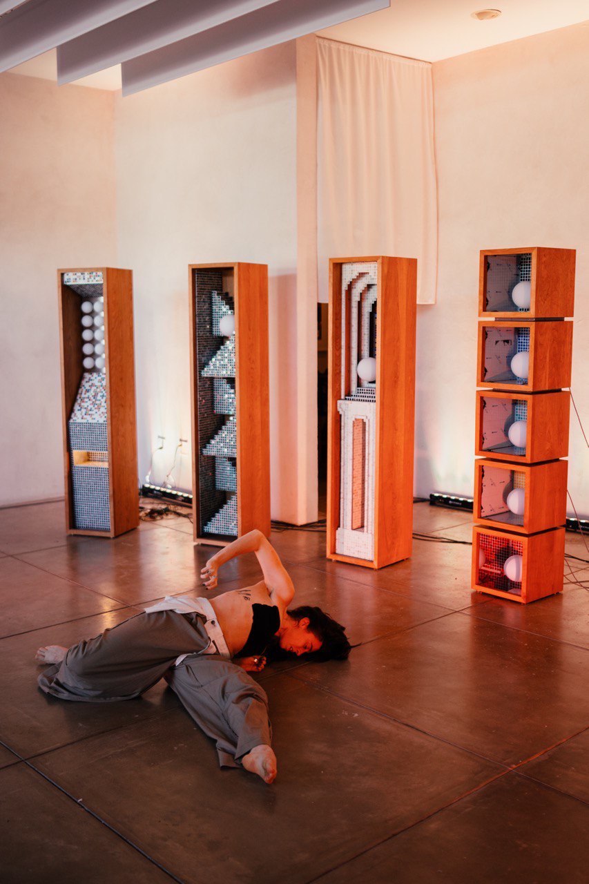 Alongside Plinths, we debuted Shadow Box — an interdisciplinary movement piece featuring the art objects in the space with live improvisational dance. Shadow Box was a collaboration between gallery director Madison Page and choreographer Harriet Waghorn, with lighting by Pak and Gory Smelley.